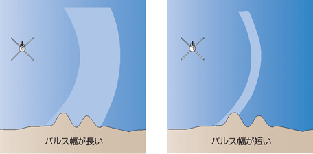 また、図2のように音波のパルス幅(送信時間)を短くする(送信時間毎秒0.1ミリではパルス幅15cm)と横方向の細かいところまでわかるようになります。