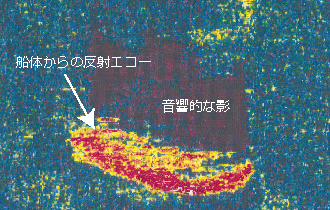 写真1 サイドスキャンソーナーで得られた音響画像の例